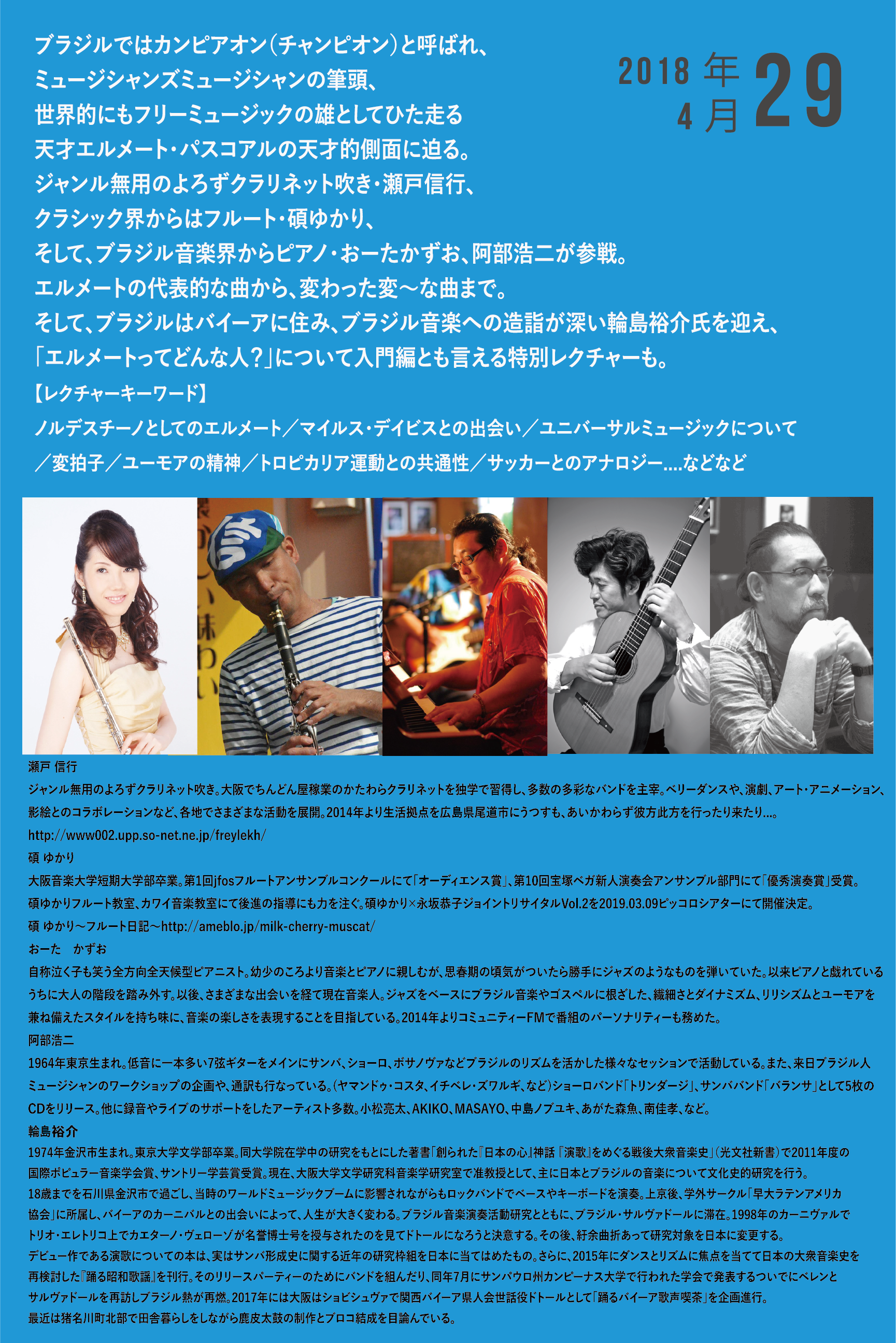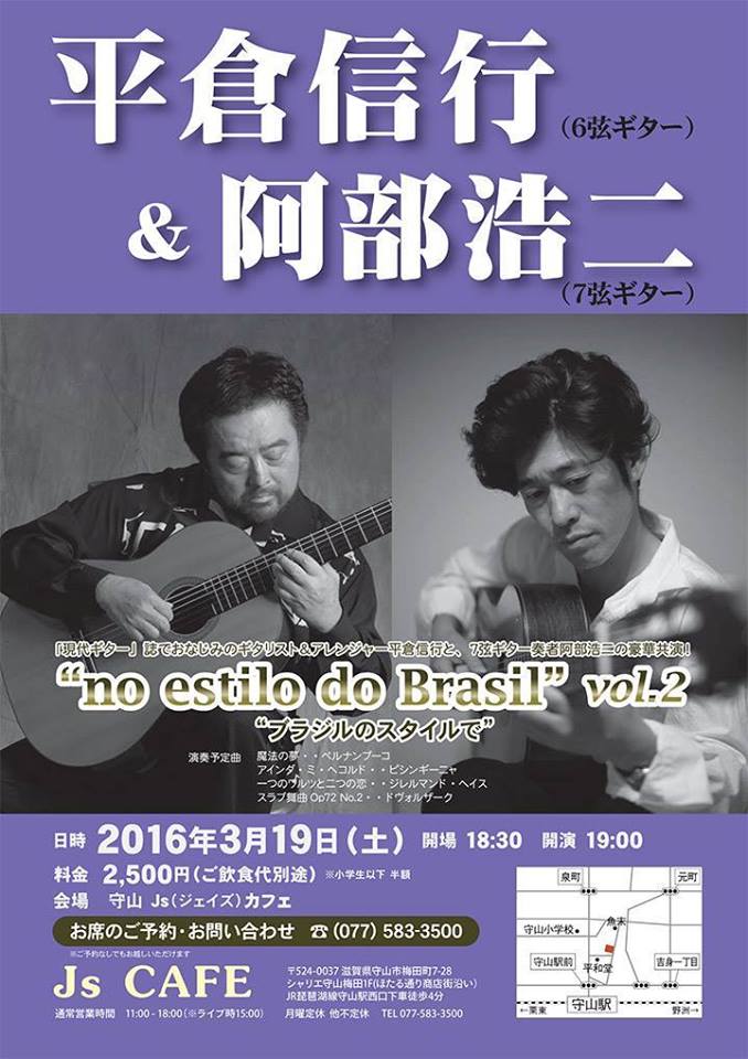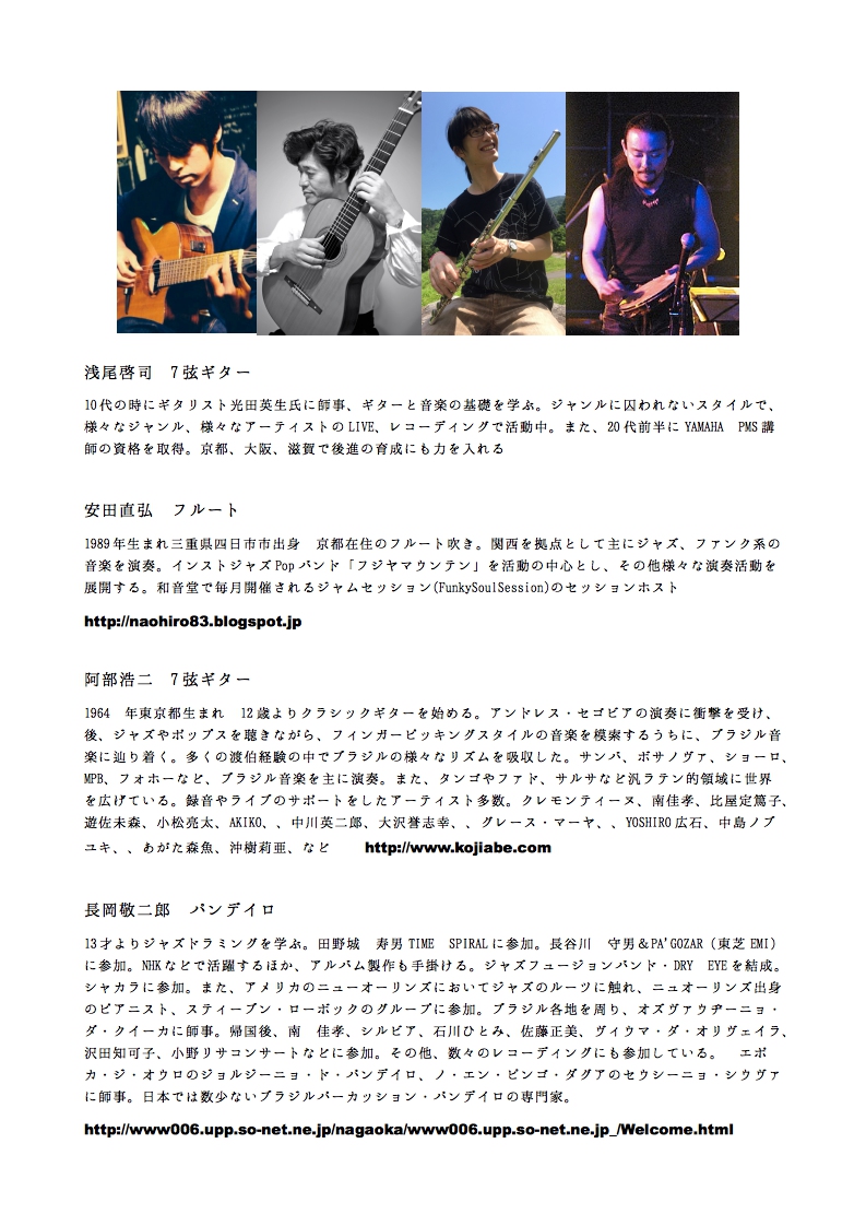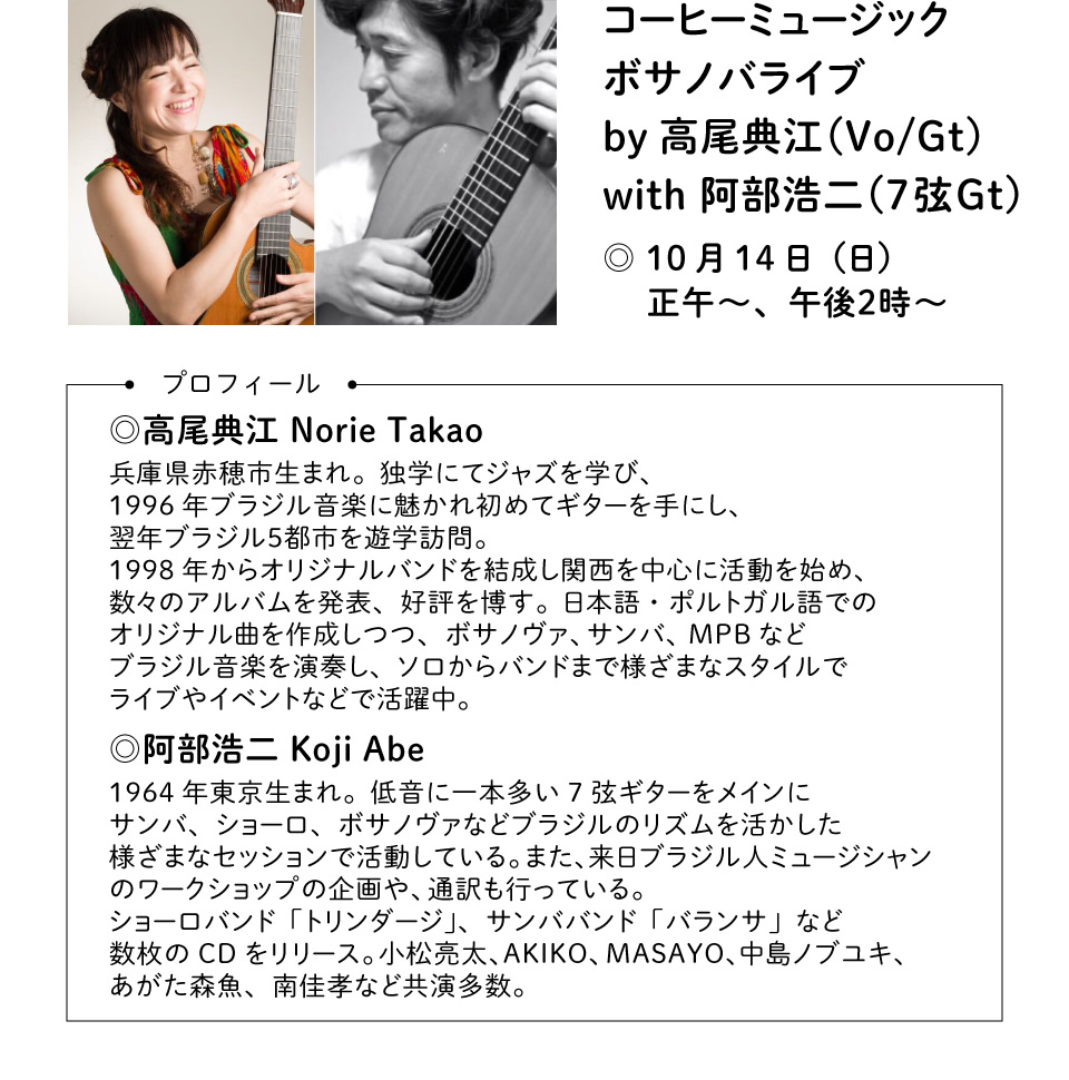 信頼度抜群の阿部浩二さんと長岡さんベテランお二人による現地にいるかのような最高のブラジリアングルーブを体感できるライブです。