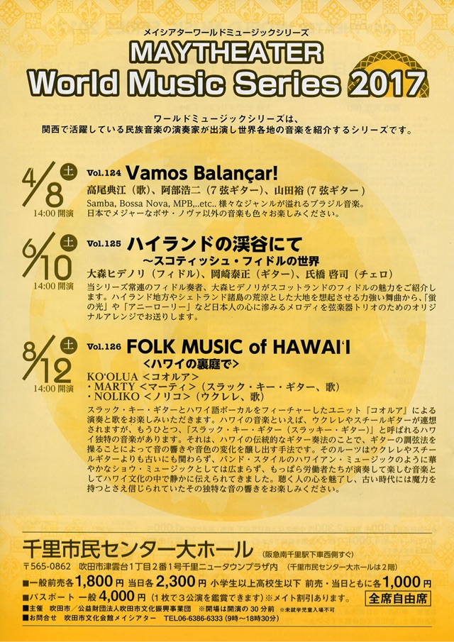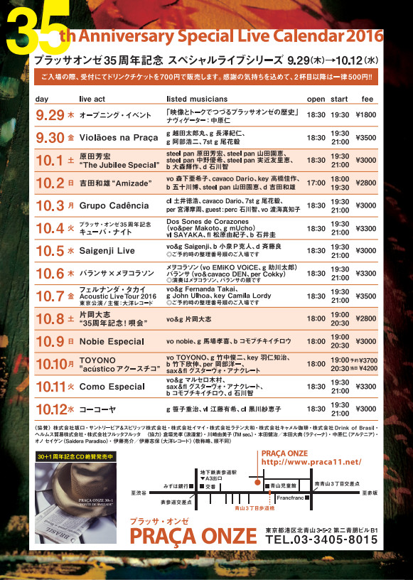 open 19:00 / start 19:30 charge 予約 2,500円 / 当日 3,000円 ご予約 Tel 06-6225-3003
