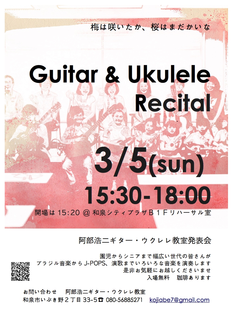□阿部浩二ギター・ウクレレ教室 (13:00より演奏スタート )