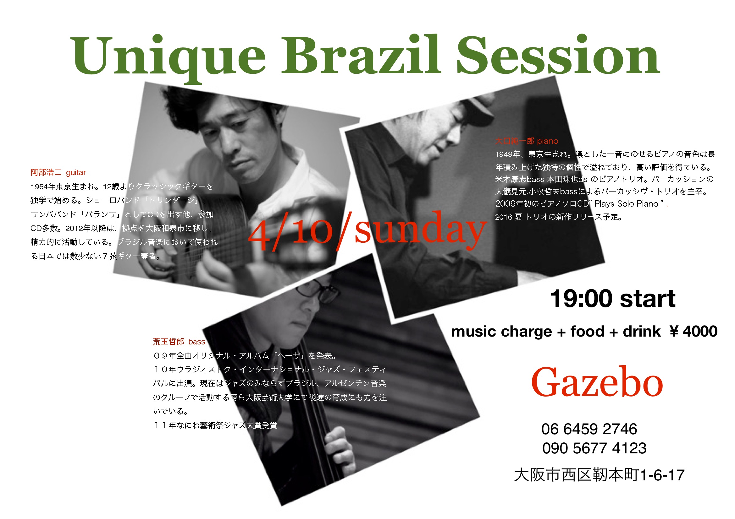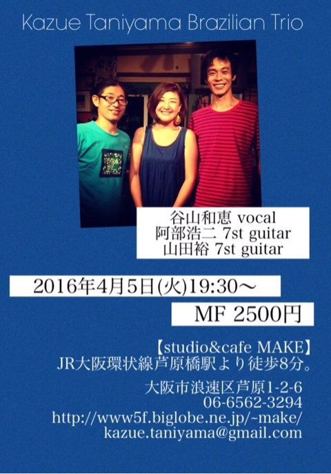 ブラジル人サックス&フルート奏者のグスターヴォと3人で(なかなか面白い編成♪)お送りします。
