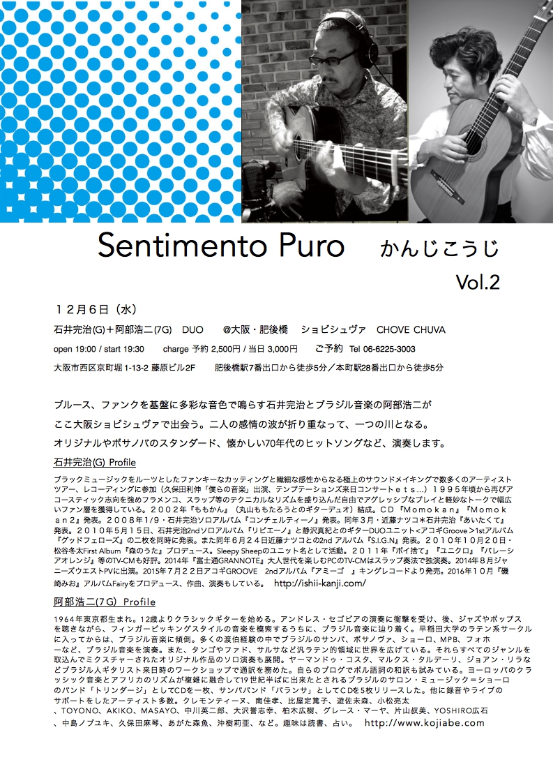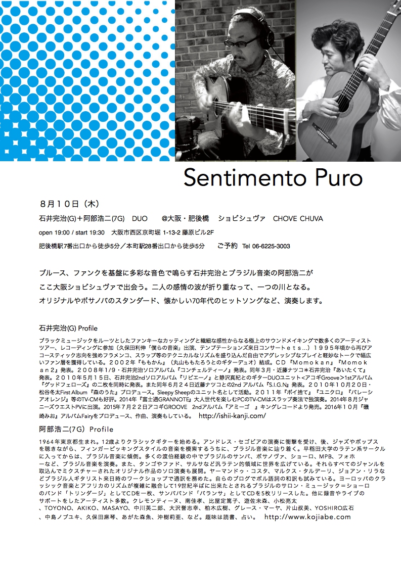 石井完治(G)+阿部浩二(7G) DUO @大阪・肥後橋 ショビシュヴァ CHOVE CHUVA